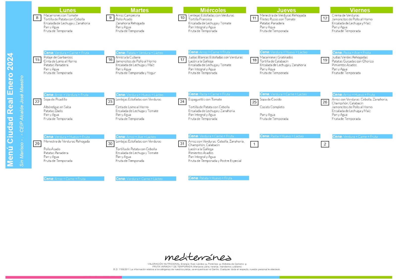 MENÚ ENERO 2024